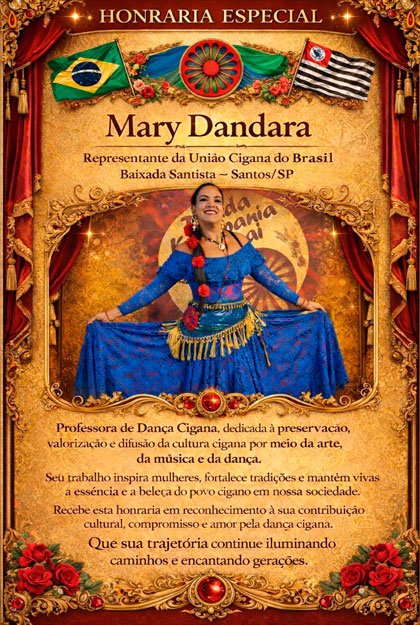 Uma homenagem a nomes e trajetórias que fortalecem a cultura, a arte e a memória da tradição cigana.