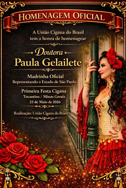 Se você deseja viver esse grande encontro cultural, conhecer de perto a apresentação do Encanto Cigano e acompanhar as homenagens da noite, vale acessar a página oficial do evento para obter informações sobre reservas, mesas e ingressos antecipados. Além disso, aproveite para conferir a galeria de imagens com nossos homenageados da 1ª festa cigana em Tocantins/MG, valorizando cada trajetória que fará parte dessa celebração tão especial. Para saber mais sobre vendas antecipadas e reservas envie uma mensagem pelo WhatsApp (21) 98865-0863 ou faça a compra direta pelo site.